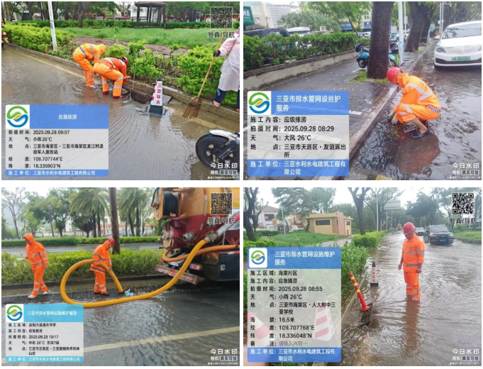自三亞市啟動防汛防風Ⅳ級應急響應起,環(huán)農(nóng)集團迅速調(diào)度10輛應急搶險車、組織319名排澇人員時刻待命,分赴各責任路段和重點區(qū)域備戰(zhàn)。將應急排澇搶險設備及物資已前置到各道路指定位置,做好“隨取隨用”準備。27日下午,根據(jù)市防風防汛會議要求,集團派出排澇人員對權屬區(qū)域窨井蓋進行專項巡檢,對存在冒溢或移位隱患的井蓋實施安全圍護,并增設沙袋等增重設備。當晚強風過后,排澇人員立即冒雨連夜開展排澇作業(yè),始終堅守在崗,連續(xù)奮戰(zhàn)至28日。