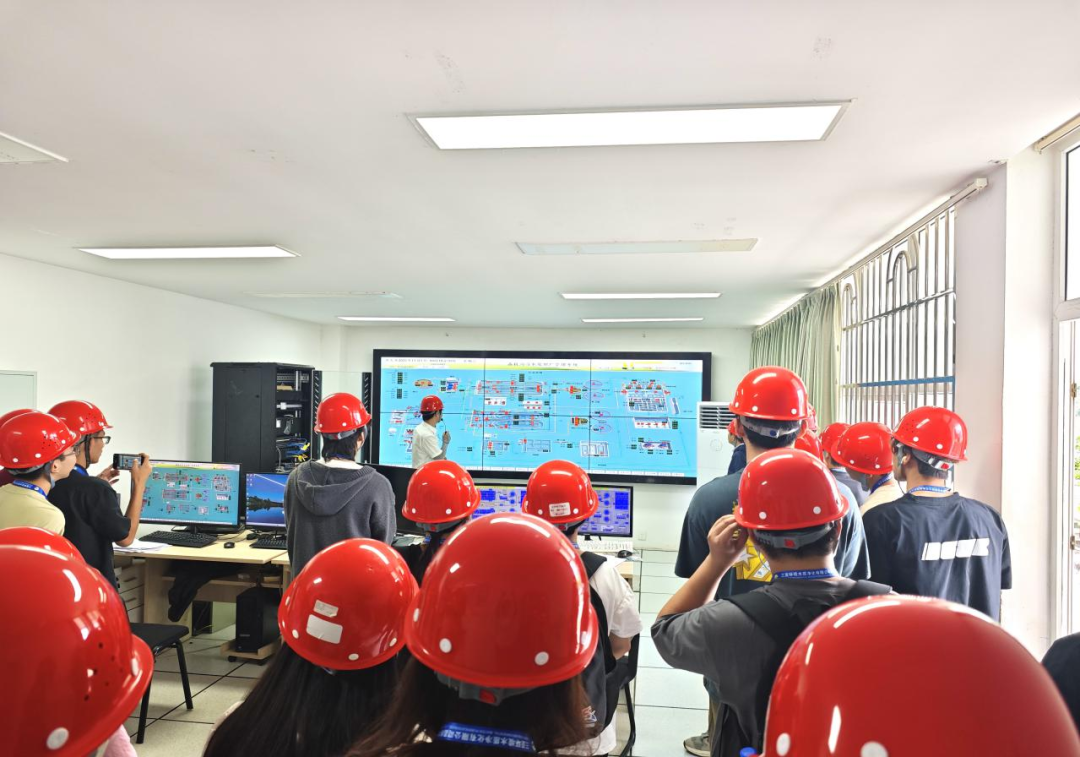 在水廠區(qū)專業(yè)技術(shù)人員的帶領(lǐng)下,師生們沿污水處理主線工藝流程,依次參觀了粗格柵、進(jìn)水泵房、生物處理區(qū)、廠區(qū)中控室等核心污水處理環(huán)節(jié)。技術(shù)人員結(jié)合現(xiàn)場設(shè)備的運(yùn)行狀況,詳細(xì)講解了污水預(yù)處理與曝氣系統(tǒng)等的原理與作用,直觀展示了廠區(qū)利用現(xiàn)代化監(jiān)控平臺進(jìn)行智能化運(yùn)行管理的方式。