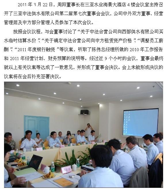 三亞中法供水有限公司第二屆第七次董事會順利召開