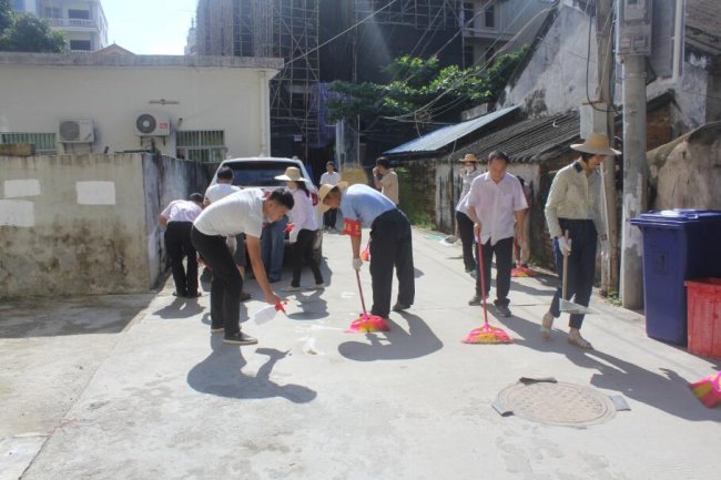 為落實(shí)市委、市政府鞏衛(wèi)工作要求,8月8日上午,我司黨委書(shū)記、總經(jīng)理袁文革率干部職工60余人再次前往我司包點(diǎn)單位回輝社區(qū)開(kāi)展鞏衛(wèi)活動(dòng)。我司鞏衛(wèi)人員不辭辛苦,不懼驕陽(yáng),汗?jié)駴驯?/span>,依然堅(jiān)持將回輝社區(qū)路面上的檳榔水清除干凈,用實(shí)際行動(dòng)為“創(chuàng)文鞏衛(wèi)”奉獻(xiàn)出自己的一份力量。