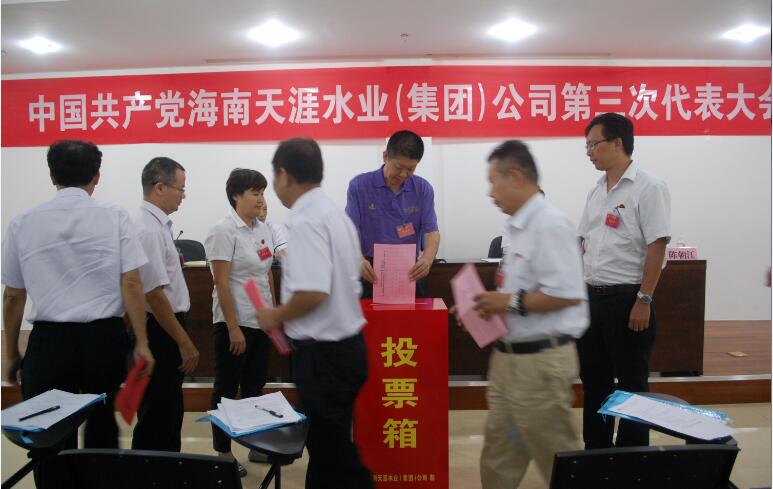 在莊嚴(yán)肅穆的氣氛中,黨委換屆選舉正式開(kāi)始,全體代表大會(huì)代表通過(guò)無(wú)記名投票和差額選舉的方式,秉承公開(kāi)、公平、公正的原則,選舉產(chǎn)生了新一屆黨委委員7名,分別是袁文革、周存榮、高元昌、孫瑜、陳朝東、陳濤、章梁;選舉產(chǎn)生了新一屆紀(jì)律委員會(huì)委員5名,分別是周存榮、劉卓毅、高喜英、邢維金、林照。隨后,中國(guó)共產(chǎn)黨海南天涯水業(yè)(集團(tuán))公司第三屆委員會(huì)和中國(guó)共產(chǎn)黨海南天涯水業(yè)(集團(tuán))公司紀(jì)律檢查委員會(huì)分別召開(kāi)了第一次全體會(huì)議,選舉袁文革同志為黨委書記,周存榮同志為黨委副書記;選舉周存榮同志為紀(jì)委書記,劉卓毅同志為紀(jì)委副書記。