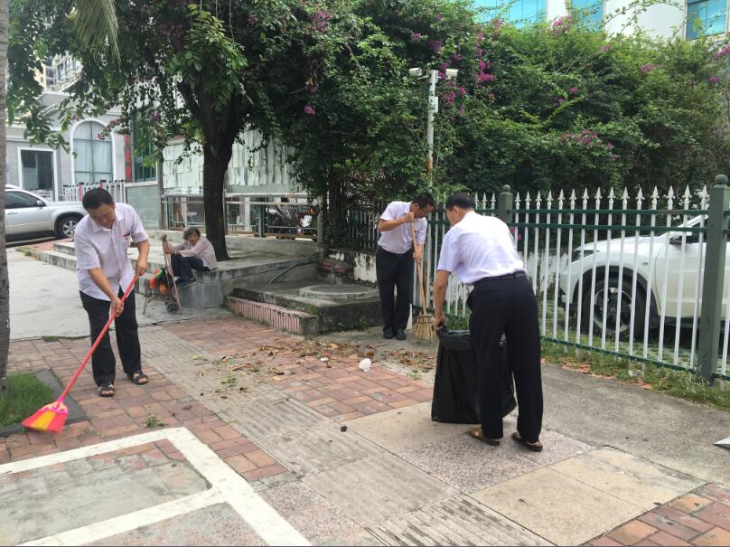 為貫徹三亞市鞏衛(wèi)辦《關(guān)于國(guó)慶、中秋兩節(jié)期間開(kāi)展“搬家式”大掃除活動(dòng)的補(bǔ)充通知》文件精神,推進(jìn)我司“黨員活動(dòng)日”活動(dòng)的深入開(kāi)展,為“兩節(jié)”期間給廣大市民游客提供更加整潔有序、健康宜居的生活環(huán)境,9月24日上午,公司黨委組織開(kāi)展以“鞏衛(wèi)”為主題的“黨員活動(dòng)日”活動(dòng),全體黨員利用休息日時(shí)間,“戴黨徽、亮身份”,充分發(fā)揮黨員模范帶頭作用,各黨支部嚴(yán)格落實(shí)行業(yè)管理、屬地管理、網(wǎng)格管理和“門(mén)前三包”責(zé)任。