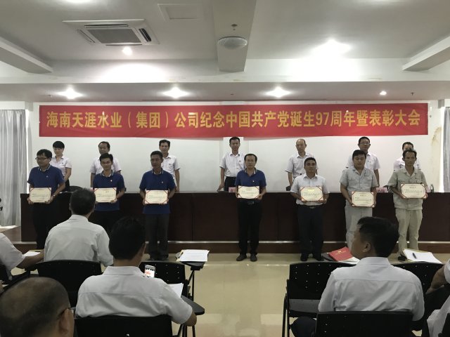 為紀念中國共產(chǎn)黨建黨97周年,貫徹落實市國資委黨委的工作部署,大力宣傳我司各級黨組和廣大黨員在生產(chǎn)經(jīng)營和“兩學一做”學習教育中涌現(xiàn)出來的先進典型, 6月29日下午,海南天涯水業(yè)(集團)公司在集團公司八樓會議室召開紀念建黨97周年暨七一表彰大會。大會由黨委副書記周存榮主持,公司黨委委員、黨總支委員、黨支部委員、全體優(yōu)秀共產(chǎn)黨員、優(yōu)秀黨務(wù)工作者、黨員代表共85人參加了會議。