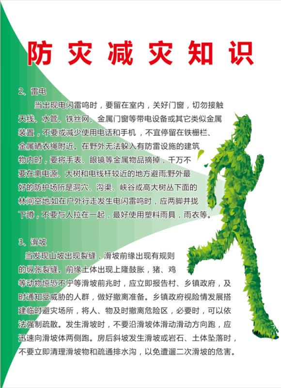 當發(fā)現(xiàn)山坡出現(xiàn)裂縫,滑坡前緣出現(xiàn)有規(guī)則的縱張裂縫。前緣土體出現(xiàn)上隆鼓脹,豬、雞等動物驚恐不寧等滑坡前兆時,應立即報告村、鄉(xiāng)鎮(zhèn)政府,及時通知受威脅的人群,做好撤離準備。鄉(xiāng)鎮(zhèn)政府視險情發(fā)展搭建臨時避災場所,將人、物及時撤離危險區(qū),必要時,可以依法強制疏散。發(fā)生滑坡時,不要沿滑坡體滑動滑動方向跑,應迅速向滑坡體兩側(cè)跑。房后斜坡發(fā)生滑坡或巖石、土體墜落時,不要立即清理滑坡物和疏通排水溝,以免遭遛二次滑坡的危害。