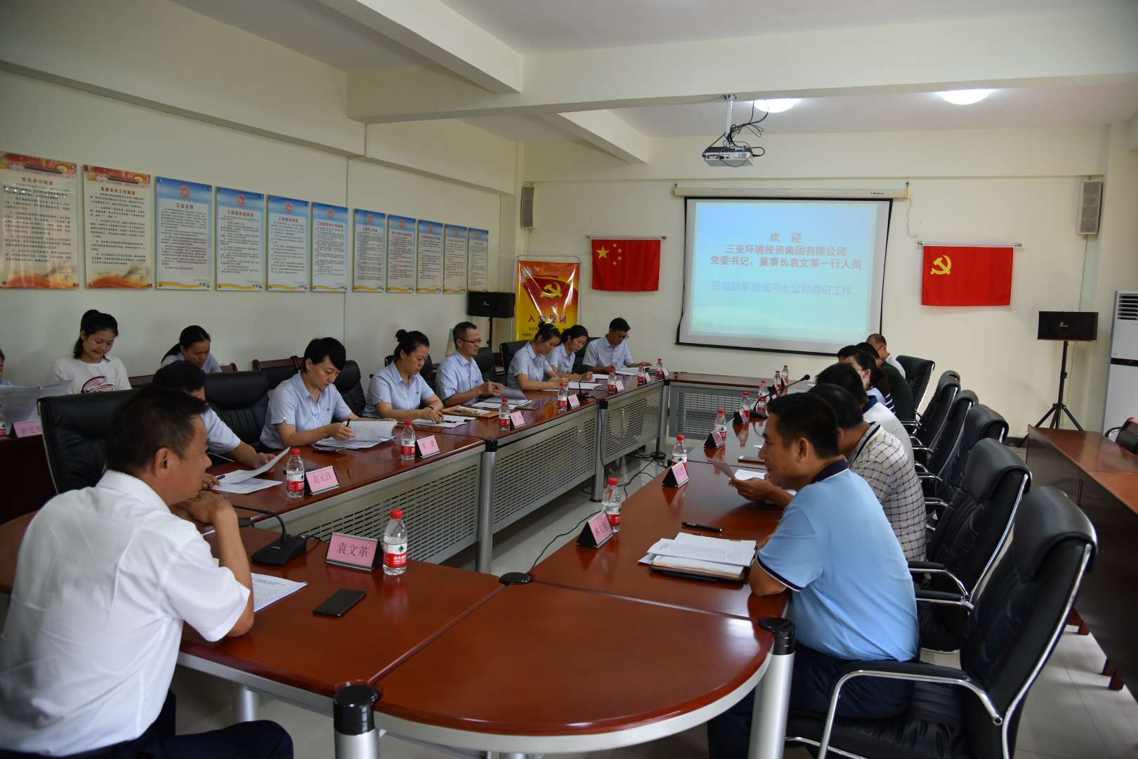 為貫徹落實三亞市委市政府全面深化國資國企改革的戰(zhàn)略部署,根據(jù)謝慶林副市長的指示精神及市國資委的工作安排,繼續(xù)推進三亞環(huán)投集團組建工作,2019年7月10日下午,黨委書記、董事長袁文革率領(lǐng)副總經(jīng)理高元昌、黨委委員章梁、陳濤和集團各職能部門負責(zé)人到三亞市創(chuàng)意新城污水處理有限公司(以下簡稱“創(chuàng)意新城污水公司”)調(diào)研座談。