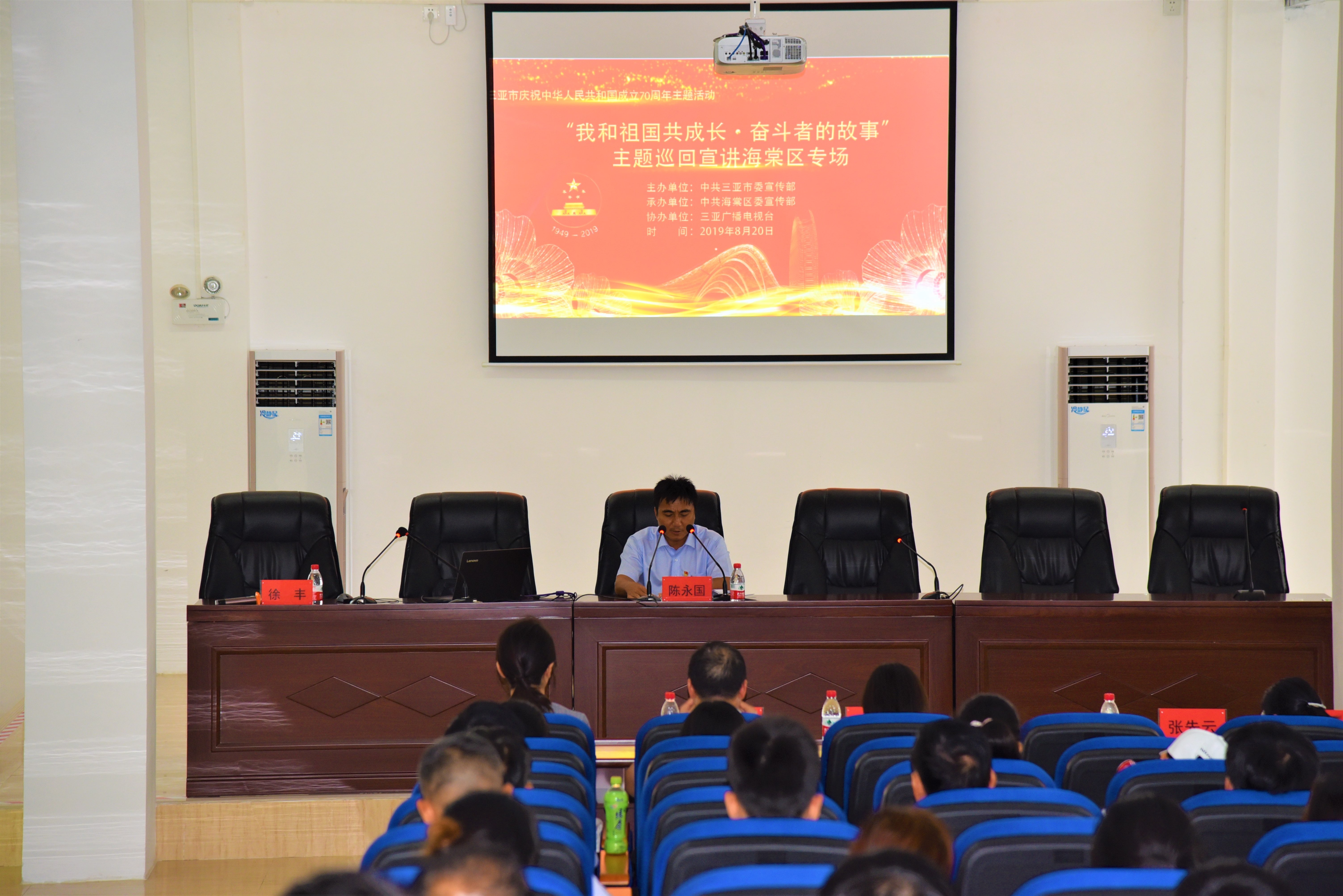 為了做好慶祝新中國(guó)成立70周年活動(dòng),根據(jù)《三亞市慶祝中華人民共和國(guó)成立70周年活動(dòng)實(shí)施方案》,三亞市委宣傳部組織開展“我和祖國(guó)共成長(zhǎng)•奮斗者的故事”主題巡回宣講。8月20日下午16時(shí),巡回宣講海棠灣專場(chǎng)在海棠區(qū)政府報(bào)告廳舉行,我司“潛水哥”——陳永國(guó)同志榮幸作為宣講團(tuán)成員之一,講述其本人的先進(jìn)事跡。