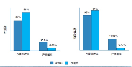 如:改造項目運營情況 梅西村、梅聯(lián)社區(qū)屬于改造項目,改造前配水管材為鍍鋅管,部分戶表未出戶,管網(wǎng)水質難以保障,漏損嚴重,不便于管理,產銷差率較高分別高達為35.9%和44.08%,水費回收率分別為80%和93%。經過改造后,產銷差率大幅下降,2019年1-7月降至8.06%和6.77%,水費回收率上升至96%和97%,管網(wǎng)水壓、水質及計量精確等方面都得到用戶認可,達到預期的改造效果。