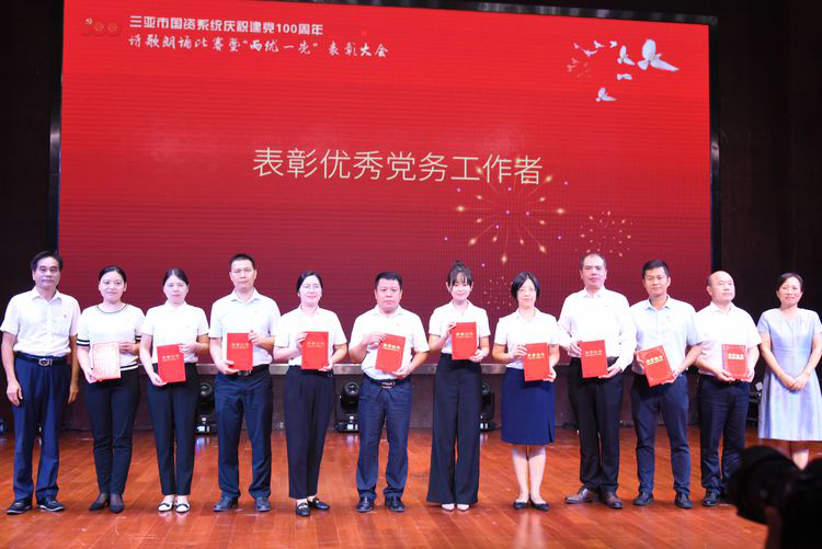 為表彰先進(jìn),樹立典型,激勵(lì)引導(dǎo)國資系統(tǒng)共產(chǎn)黨員、黨務(wù)工作者和各基層黨組織進(jìn)一步奮發(fā)有為、建功立業(yè),6月28日19:30,在群眾藝術(shù)館一樓演播廳隆重舉行三亞市國資系統(tǒng)慶祝中國共產(chǎn)黨成立100周年朗誦比賽暨“兩優(yōu)一先”表彰大會,大會由我司承辦,章梁和羅凱兩位同志統(tǒng)籌,市國資委機(jī)關(guān)副處級以上干部、總會計(jì)師、各科室負(fù)責(zé)人和機(jī)關(guān)職工,各直屬黨組織黨委書記、副書記,所有受表彰的同志、朗誦比賽選手及光榮在黨50年老黨員代表200余人參加。