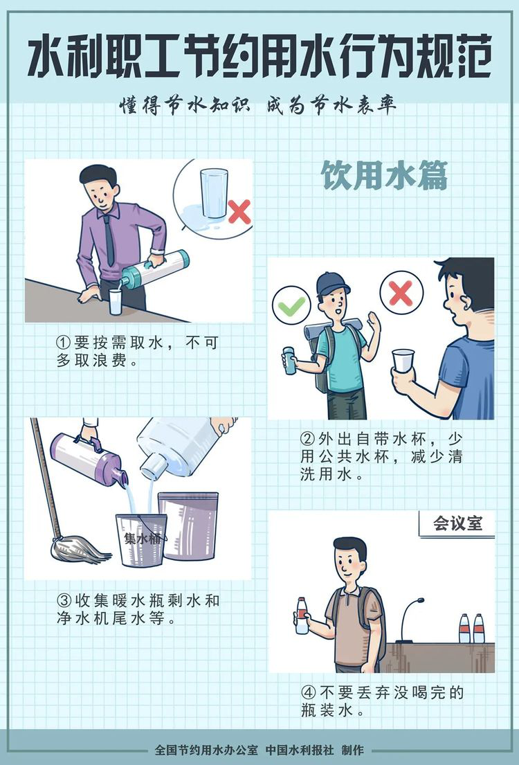 為深入貫徹落實(shí)節(jié)水優(yōu)先方針,倡導(dǎo)節(jié)約每一滴水,發(fā)揮水利職工的模范表率作用,水利部制定了《水利職工節(jié)約用水行為規(guī)范(試行)》,希望大家認(rèn)真學(xué)習(xí),讓節(jié)約用水成為每名職工的自覺行動,為環(huán)投集團(tuán)創(chuàng)建節(jié)水型單位和三亞創(chuàng)建節(jié)水型城市作出應(yīng)有貢獻(xiàn)。