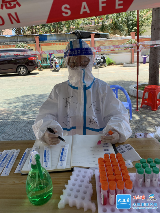 今年32歲的謝學(xué)慧是三亞環(huán)投集團(tuán)的一名工作人員。在集團(tuán)工作群中收到號召黨員干部職工下沉一線,踴躍參與疫情防控志愿服務(wù)的消息后,謝學(xué)慧第一時間報了名。4月2日至今,每天早晨五六點開始,謝學(xué)慧一直在核酸檢測點位連軸轉(zhuǎn),揮灑著青春的汗水。