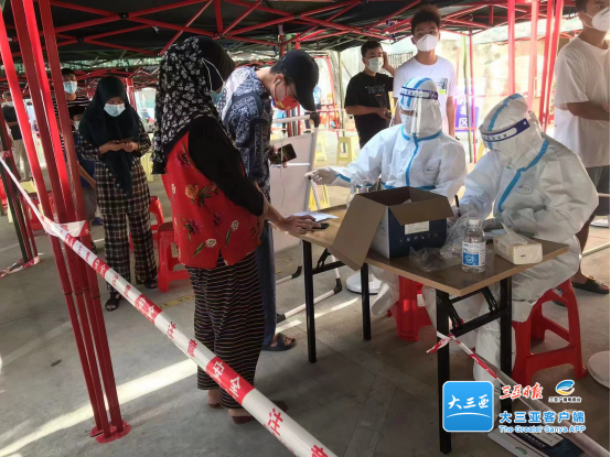 在海潤路檢測點服務(wù)的鄭康作為流動人員到采樣各個環(huán)節(jié)替崗,一天下來基本沒有時間坐下來休息,碰到不會操作智能手機(jī)的居民,他總是耐心地為大家講解示范,有時遇到一些聽不懂普通話的老人,他就用海南話耐心講解許多遍,直到老人們順利做完核酸他才放心離開……