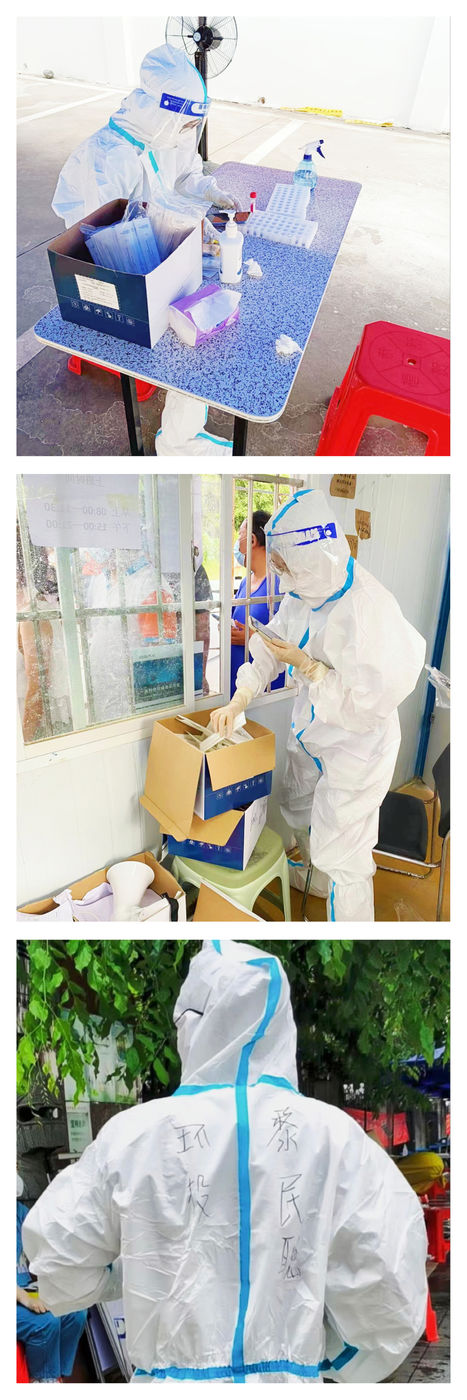 8月4日及8月5日,應(yīng)回輝社區(qū)和光明社區(qū)采樣點(diǎn)志愿服務(wù)支援需求,環(huán)投集團(tuán)派出三批志愿者共46人次到采樣點(diǎn)協(xié)助核酸采樣工作,負(fù)責(zé)做好核酸人員信息采集和現(xiàn)場(chǎng)秩序維持等工作。雖然天氣炎熱,穿上防護(hù)服后汗如雨下,但是能為三亞抗疫做出自己一份貢獻(xiàn),大家都干勁很足。 其中吳香瑤、黎民聰同志,在炎熱天氣下穿著防護(hù)服連續(xù)工作6個(gè)小時(shí),在無(wú)人換崗的情況下堅(jiān)守崗位,毫無(wú)怨言,展現(xiàn)了環(huán)投志愿者團(tuán)隊(duì)的擔(dān)當(dāng)和力量。回輝社區(qū)核酸檢測(cè)點(diǎn)志愿者張藝懷在完成本班志愿服務(wù)后,主動(dòng)接替臨時(shí)變黃碼的晚班志愿者工作,繼續(xù)堅(jiān)守使命。