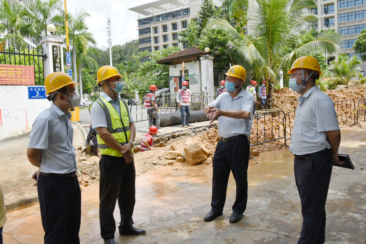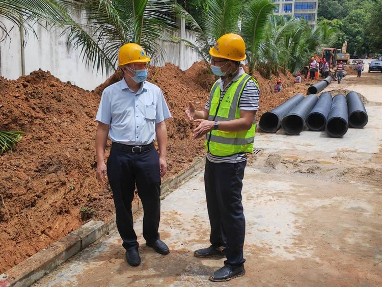 連日來,黨委書記、董事長張秀標(biāo)及黨委副書記曾山多次到項目現(xiàn)場督導(dǎo)建設(shè)工作。張秀標(biāo)董事長強調(diào),建設(shè)南繁基地核酸檢測實驗室是補充三亞核酸檢測能力的一項重要工作,項目參建人員一定提高政治站位,把配套排水工程作為一項重要的政治使命,克服萬難、加快推進,力爭7日完成市政管網(wǎng)接駁,具備通水條件,提前高效完成建設(shè)任務(wù),全力保障核酸實驗室正常運行。同時,在項目建設(shè)過程中要嚴(yán)把工程質(zhì)量,做好施工圍擋、場地衛(wèi)生等文明施工工作,將工程施工對周邊的影響降至最低。