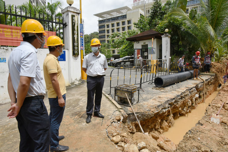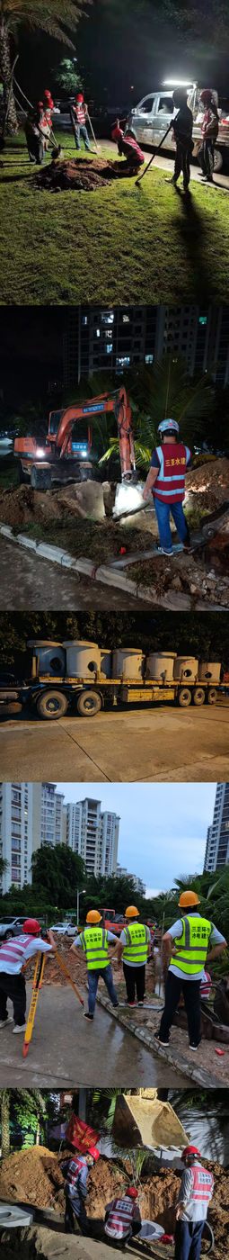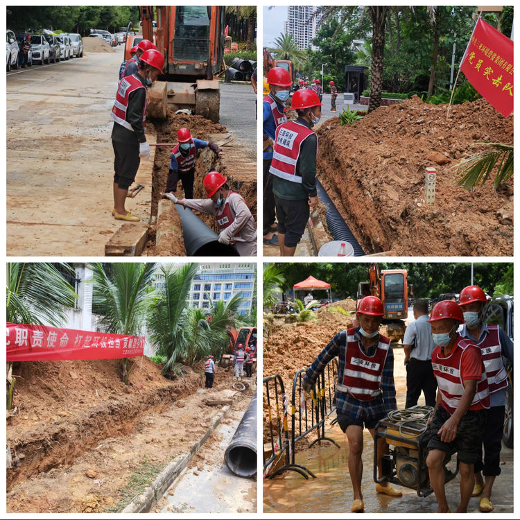 根據(jù)市委市政府的統(tǒng)籌部署,由三亞環(huán)投集團承擔(dān)南繁基地核酸檢測實驗室排水工程建設(shè)。為快速高質(zhì)量完成好項目建設(shè)任務(wù),為全市疫情防控作出應(yīng)有貢獻,環(huán)投集團高位推動、迅速響應(yīng),充分發(fā)揮應(yīng)急項目建設(shè)臨時黨支部和黨員突擊隊作用,集結(jié)集團項管部、建筑公司等精銳力量,于8月4日晚10點,也就是接到建設(shè)指令4小時后即推動排水工程正式開建。
