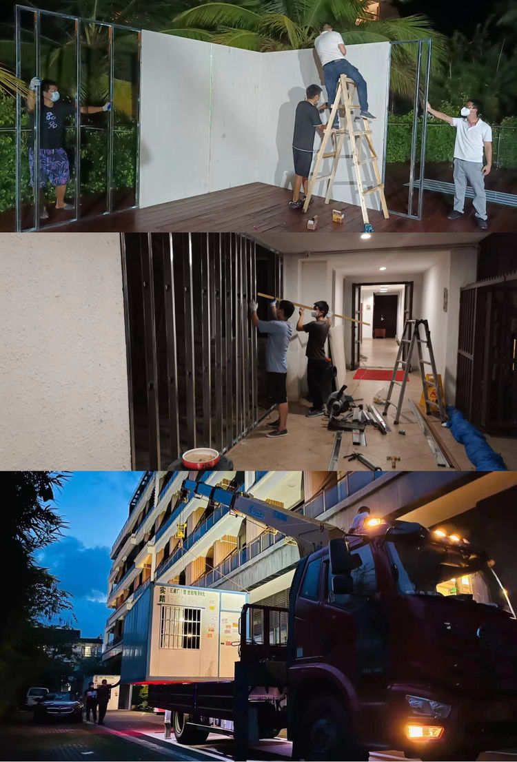 按照專家指導(dǎo)要求,環(huán)投集團(tuán)建設(shè)團(tuán)隊(duì)對(duì)符合條件的酒店按照按照“三區(qū)兩通道”標(biāo)準(zhǔn)進(jìn)行隔離改造,加裝隔板、增設(shè)醫(yī)護(hù)人員一脫二脫區(qū)域、增加垃圾集中收集箱,設(shè)置清潔區(qū)、污染區(qū)、半污染區(qū)以及工作人員與隔離人員的進(jìn)出通道。環(huán)投建設(shè)團(tuán)隊(duì)兵分兩路,分別在海棠灣和亞龍灣區(qū)域同步進(jìn)行施工作業(yè),時(shí)間緊迫、任務(wù)繁重,建設(shè)團(tuán)隊(duì)克服施工人員、建筑材料短缺等困難和疫情靜態(tài)管控的通行問(wèn)題,前后方密切協(xié)作,24小時(shí)不間斷施工,截至8月19日晚已完成亞龍灣愛(ài)琴海、喜來(lái)登、海棠灣亞特蘭蒂斯、國(guó)壽嘉園等6家酒店的隔離建設(shè)任務(wù),即將轉(zhuǎn)戰(zhàn)大東海、三亞灣區(qū)域進(jìn)行剩余7家酒店的改造。