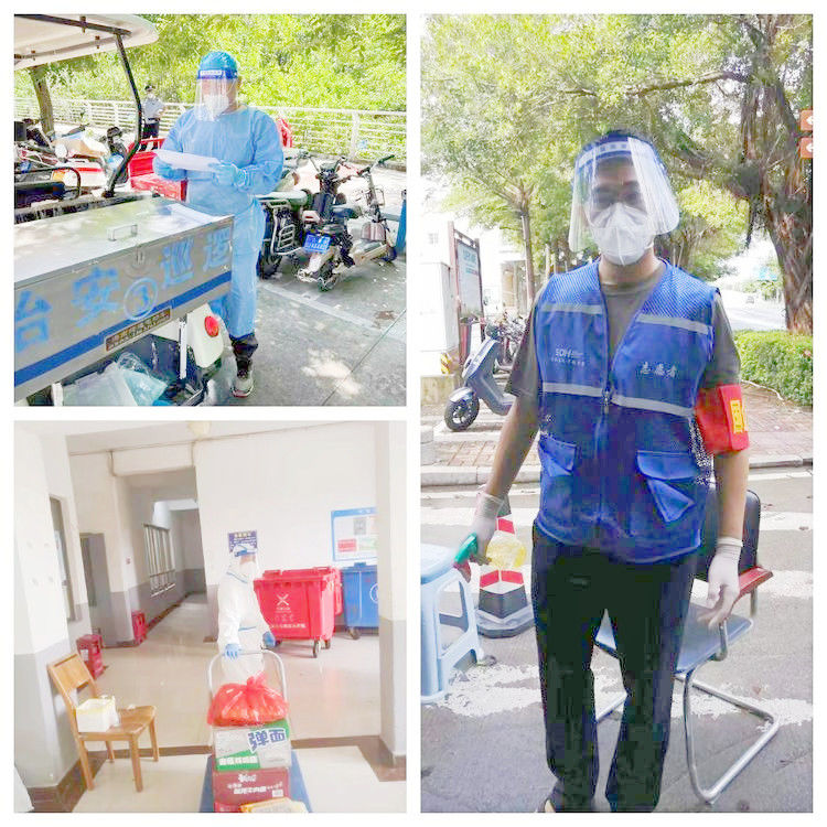 吉承同志作為水凈公司領(lǐng)導(dǎo),積極踴躍地報(bào)名參與社區(qū)志愿者,為公司宿舍小區(qū)盡自己的綿薄之力。他負(fù)責(zé)在小區(qū)門崗執(zhí)勤,做好人員的體溫測(cè)量、登記及消毒,并在小區(qū)內(nèi)核酸檢測(cè)時(shí)維持排隊(duì)秩序,面對(duì)突如其來地雷雨,他不辭辛勞為防疫工作人員撐起傘,同時(shí)與其他志愿者一同助力運(yùn)送生活物資至小區(qū)各家各戶,解決了小區(qū)居民物資緊缺的燃眉之急并保障了大家減少外出避免感染;疫情爆發(fā)當(dāng)下,他馬上積極協(xié)調(diào)部門人員為公司做好防疫物資的充足儲(chǔ)備,隨時(shí)待命為公司各廠做好防疫后勤保障工作。