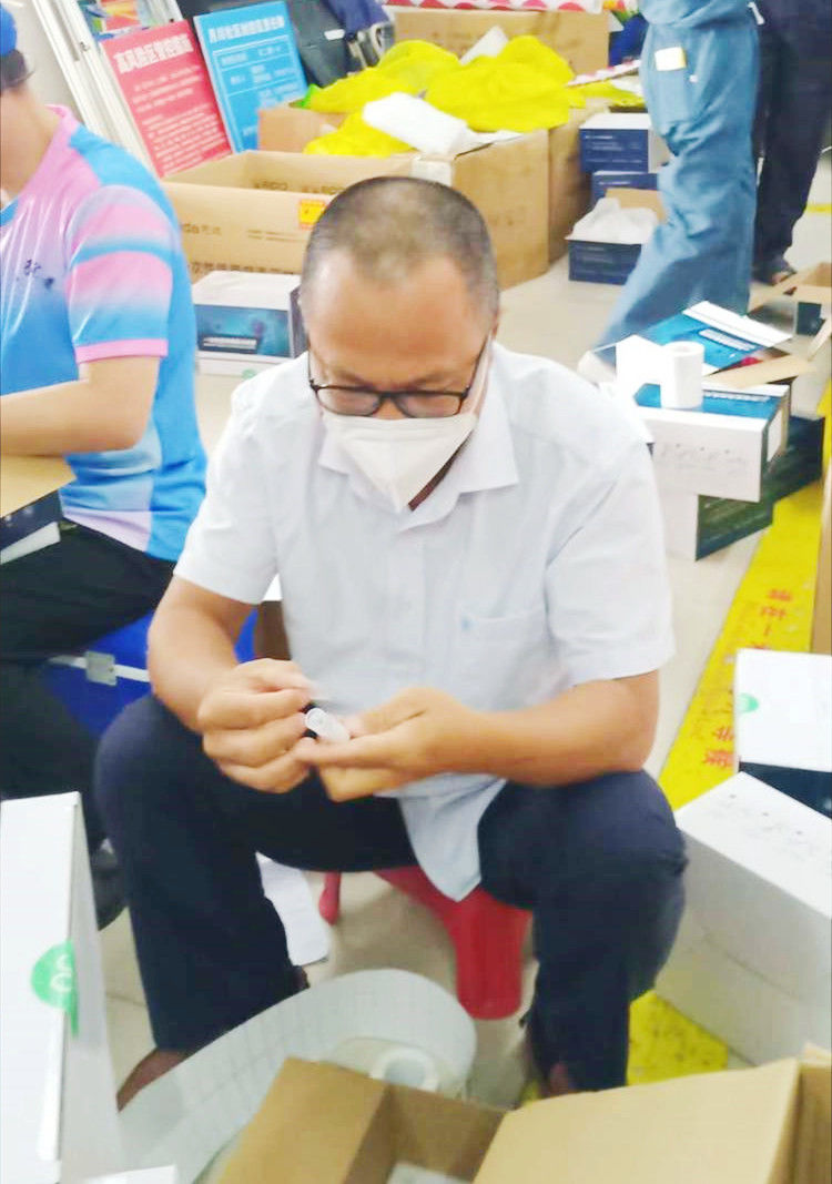 技術(shù)服務(wù)公司孫定財(cái)同志作為一名黨員干部,在疫情爆發(fā)的第一時(shí)間,帶頭立刻向所在社區(qū)報(bào)名參加志愿服務(wù),積極保障所在社區(qū)居民的物資要求,以實(shí)際行動(dòng)展現(xiàn)黨員風(fēng)采。除了繁重的志愿活動(dòng),他還要協(xié)助第五方艙的建設(shè)工作,積極分配人員參與方艙工作,同時(shí)做好各類設(shè)備、泵站的保供要求,全力保障各項(xiàng)工作的順利進(jìn)行。他的手機(jī)全天24小時(shí)暢通,生怕疫情中耽誤防疫工作進(jìn)展,一刻也未得停歇。