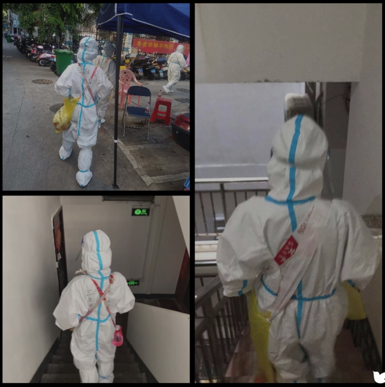 西部供水公司的劉為輝和張小翠同志在接到志愿服務(wù)通知后,立刻報(bào)備成為各自社區(qū)志愿者。從穿上防護(hù)服至今,他們每天跟著醫(yī)務(wù)人員挨家挨戶采集核酸信息。劉為輝同志每日爬10多棟樓,采集信息多達(dá)250余條。他所在的社區(qū)內(nèi)多是老樓小區(qū)且無電梯,樓道又窄又悶熱,他時(shí)常喘不過氣,卻仍忍著不適耐心勸導(dǎo)大家配合。張小翠同志也是巾幗不讓須眉,每天爬樓都嚴(yán)重透支著她的身體,但她咬緊牙關(guān),從無怨言。縱然結(jié)束任務(wù)回到家中整個(gè)人已經(jīng)癱軟無力,但為了三亞疫情早日得到控制,他們總會(huì)滿血復(fù)活,以飽滿的精神投入到新一天的抗疫工作中。