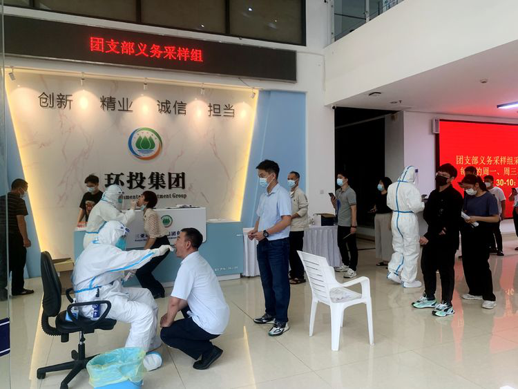 10月21日一早,在集團(tuán)機(jī)關(guān)一樓大廳,核酸采樣志愿者根據(jù)規(guī)范化培訓(xùn)的流程穿戴好防護(hù)裝備,做好個(gè)人防護(hù),準(zhǔn)備好采樣所需物資,為有序排隊(duì)的同事們依次進(jìn)行核酸采樣。在團(tuán)支部書(shū)記鄭東懿的號(hào)召下,策劃部王康存、西部公司盛受娟、技術(shù)服務(wù)公司黎晶晶、邢豐、李傳振、生態(tài)樊芷彤、新能源李帥、管網(wǎng)公司李濤等同志率先響應(yīng)號(hào)召,第一時(shí)間報(bào)名志愿服務(wù),成為首批上崗的核酸采樣“義務(wù)兵”。