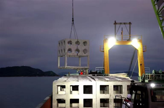 人工魚礁投放工作實(shí)行24小時(shí)作業(yè)。