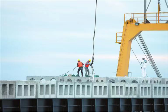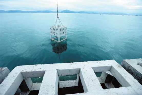 工人正對(duì)人工魚礁進(jìn)行固定。