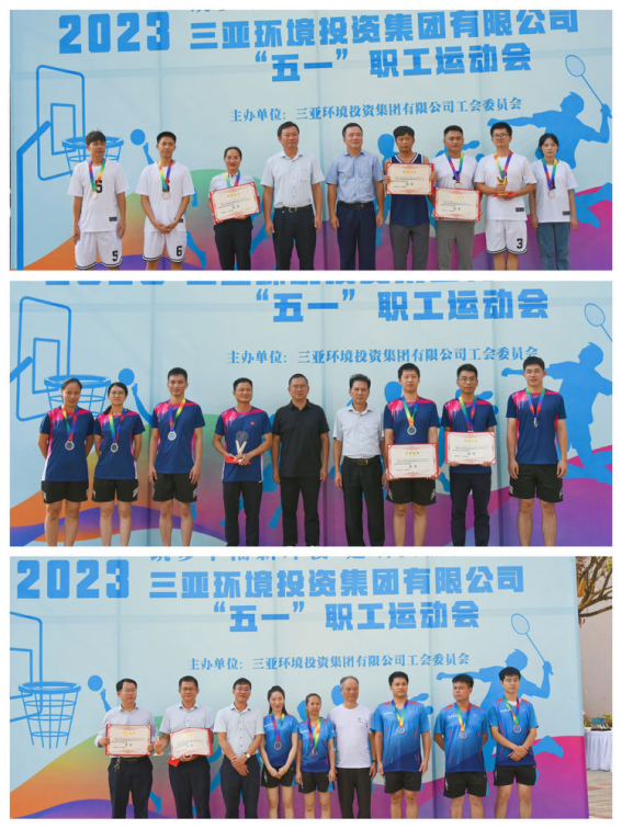 筑夢幸福新環(huán)投,建功美麗自貿港。4月28日下午,三亞環(huán)投集團2023年“五一”職工運動會經過5天激烈而友好的角逐圓滿落下帷幕,廣大環(huán)投健兒們齊聚集團辦公樓前,共同慶祝運動會勝利閉幕,意氣風發(fā)參加頒獎儀式。市國資委黨委書記、主任馮強應邀出席閉幕式并致辭,集團黨委書記、董事長張秀標等黨委班子領導和中法供水公司總經理陳志原出席閉幕式并為獲獎個人和團隊頒獎。