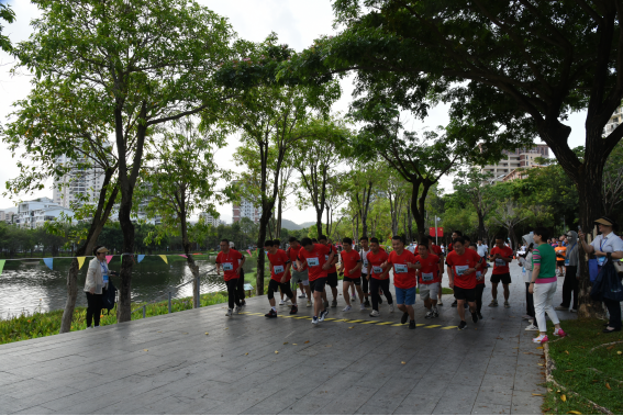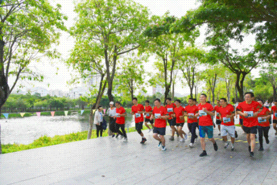 5公里短程馬拉松賽是此次運動會的創(chuàng)新項目,也是參與度最高的一個項目。28日一早,120名短程馬拉松參賽選手齊聚風景秀麗的東岸濕地公園,沐浴著清晨的陽光,大家精神抖擻,興致高昂,歡樂出發(fā)。集團黨委領導全員上陣,和大家一起奔跑在東岸濕地公園風景秀麗的景觀綠道上。一路上大家歡聲笑語、昂首闊步前行,在輕松友好的氛圍中你追我趕,互相鼓勵,隊伍綿延百米,形成了一道靚麗的風景線。
