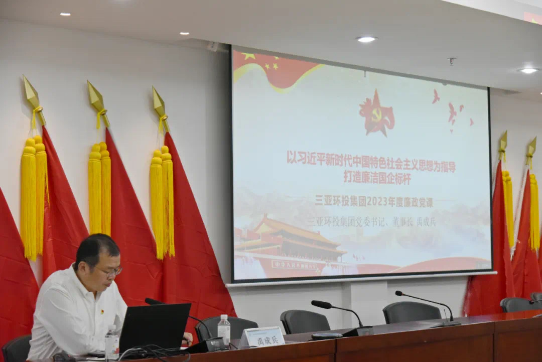 為鞏固深化2023年全省黨員干部警示教育三亞巡回展紀(jì)律教育成果,落實(shí)全面從嚴(yán)治黨新部署新要求,12月29日下午,三亞環(huán)投集團(tuán)黨委組織召開(kāi)廉政黨課,黨委書(shū)記、董事長(zhǎng)禹成兵以“以習(xí)近平新時(shí)代中國(guó)特色社會(huì)主義思想為指導(dǎo) 打造廉潔國(guó)企標(biāo)桿”為主題,為集團(tuán)黨委班子成員、全司中層以上領(lǐng)導(dǎo)干部及監(jiān)察對(duì)象講授廉政黨課。
