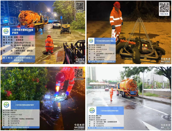 自三亞市啟動防汛防風Ⅳ級應急響應起,環(huán)農(nóng)集團迅速調(diào)度10輛應急搶險車、組織319名排澇人員時刻待命,分赴各責任路段和重點區(qū)域備戰(zhàn)。將應急排澇搶險設備及物資已前置到各道路指定位置,做好“隨取隨用”準備。27日下午,根據(jù)市防風防汛會議要求,集團派出排澇人員對權屬區(qū)域窨井蓋進行專項巡檢,對存在冒溢或移位隱患的井蓋實施安全圍護,并增設沙袋等增重設備。當晚強風過后,排澇人員立即冒雨連夜開展排澇作業(yè),始終堅守在崗,連續(xù)奮戰(zhàn)至28日。