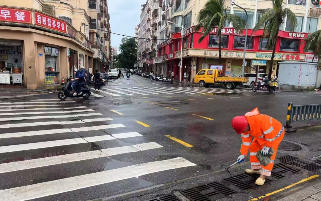 小長假期間,三亞市污水管網(wǎng)管理有限公司(簡稱“管網(wǎng)公司”)組建排澇專業(yè)隊伍嚴陣以待,在風雨來臨前迅速啟動應(yīng)急響應(yīng)機制,并借鑒以往臺風應(yīng)對經(jīng)驗,300余名應(yīng)急保障人員提前在低洼路段和易積水區(qū)域前置布防應(yīng)急搶險設(shè)備。大功率抽水泵、發(fā)電機等專業(yè)設(shè)備被提前部署到關(guān)鍵點位,確保一旦出現(xiàn)積水情況,能夠第一時間開展應(yīng)急抽排作業(yè)。在抗擊臺風的過程中,他們晝夜不停,始終堅守在排澇一線,清理堵塞的雨水篦子,打開井蓋加速排水,設(shè)置危險標識,確保排水暢通,在臺風肆虐時成為了這座城市最堅實的防線。