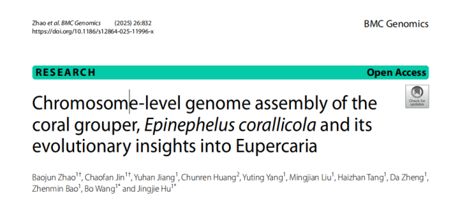 近日,由三亞環(huán)農(nóng)集團(tuán)旗下三亞農(nóng)投海洋產(chǎn)業(yè)有限公司與中國海洋大學(xué)三亞海洋研究院合作實施的省重點(diǎn)科研項目“石斑魚種質(zhì)資源高效維護(hù)與應(yīng)用”項目獲得階段性成果,其研究內(nèi)容《Chromosome-level genome assembly of the coral grouper, Epinephelus corallicola and its evolutionary insights into Eupercaria》,已成功發(fā)表于國際權(quán)威期刊《BMC Genomics》。