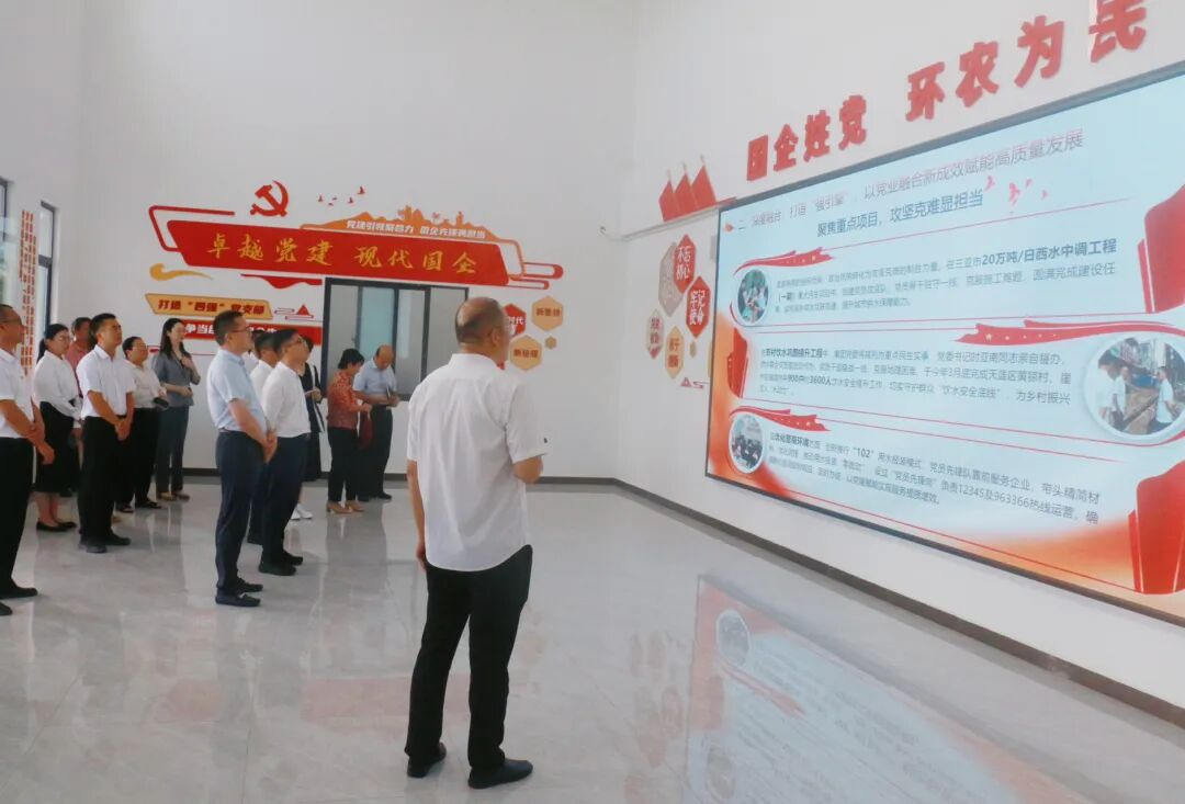 活動中,參觀團隊聽取了環(huán)農(nóng)集團黨委、供水聯(lián)合黨支部開展黨建引領(lǐng)海南自貿(mào)港先鋒行動的整體情況、主要做法與實踐成果的工作匯報,詳細了解集團創(chuàng)新“卓越黨建+現(xiàn)代國企”治理體系和實施“343”工作法的思路、架構(gòu)與創(chuàng)新實踐亮點。